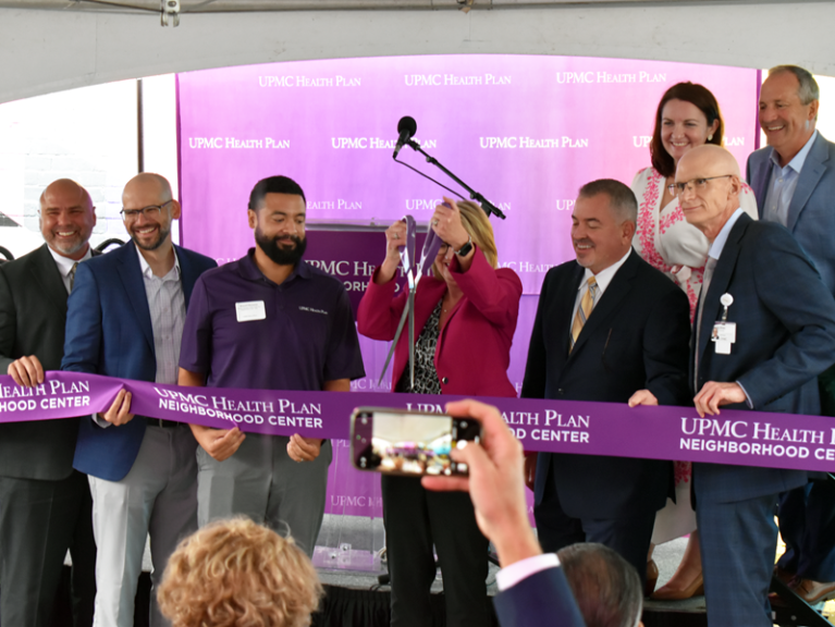 On July 31, 2025, HHF staff and stakeholders braved the rain to gather for a ribbon-cutting on the new UPMC Health Plan Neighborhood Center, located at 803 East Avenue.